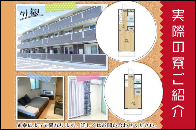 寮情報 | 【寮費】 【寮から職場まで】 【即入寮可】 【間取り】 【敷金・礼金0円】 【家具・家電完備(無料)】 【ポケットWi-Fi貸し出し】 【駐車場完備(有料)】 【引っ越し費用補助サービスあり!】 【周辺環境】 ※寮によって多少異なる場合があります。 |