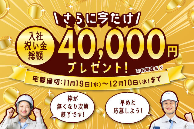 | 仕事内容 | \ただいま15名募集!入社祝い金4万円プレゼント/ . . . .