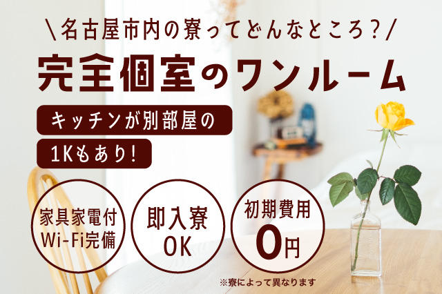 | 寮情報 | 【間取り】 ※ニッコー寮は集合寮となり、食堂や大浴場が利用できます。 【即入寮可】 【敷金・礼金0円】 【家具・家電付き】 【引っ越し費用補助あり】 【寮から職場まで】 【周辺環境充実】 |