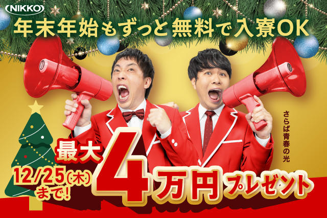 \12月25日まで!!年内入寮まだ間に合う☆/年末年始はニッコーの待機寮でまったり過ごそ♪クリスマスキャンペーン開催中!最大4万円プレゼント★