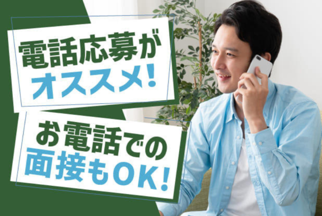 | 選べる面接方法 | 【自宅からでもOK!選べる面接方法】 (1)電話面接 (2)自宅からできるスマホ(WEB)面接 (3)来社していただく面接 ★お好きな面接方法を選べます! 応募時にご希望を伝えていただくとスムーズです |