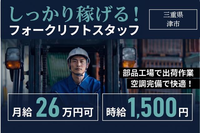 【資格を活かして月収26万円可】部品工場のフォークリフト作業/時給1,500円◆空調完備でカイテキ◎
