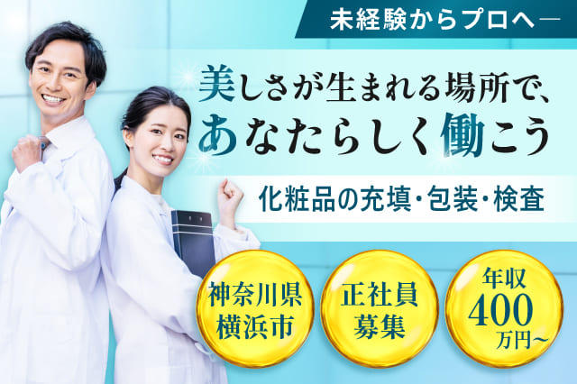【ピカソ美化学研究所】化粧品の充填・包装・検査スタッフ|寮費無料&日勤のみ(正社員/年収400万~)