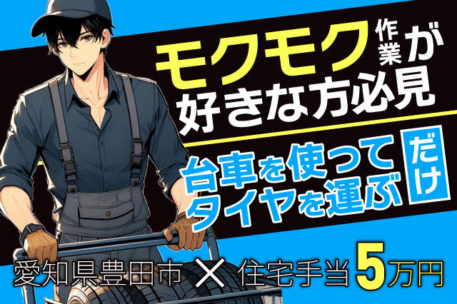 【モクモクと作業することが好きな方必見!】頭を使う必要ナシ!台車を使ってタイヤを運ぶだけ★住宅手当を毎月5万円支給★