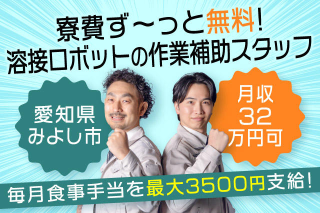 【寮費がずっと0円!】食事手当を毎月支給◎月収32万円可!部品のセットや運搬など、溶接ロボットの作業補助◎