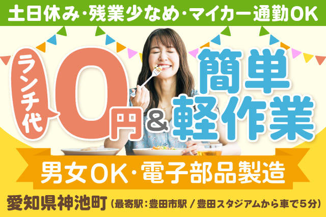 《毎日ランチ代0円&力仕事ナシのシンプル軽作業》小型電子部品製造(男女OK)◆マイカー通勤可