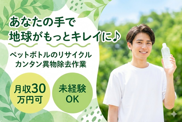 【月収30万円可◎】ペットボトルフレークの異物除去スタッフ!未経験OKのカンタン分別作業♪