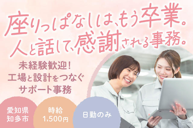 【メーカー工場の事務員】時給1600円(未経験OK)/残業なし/金山駅から職場まで無料バス送迎あり
