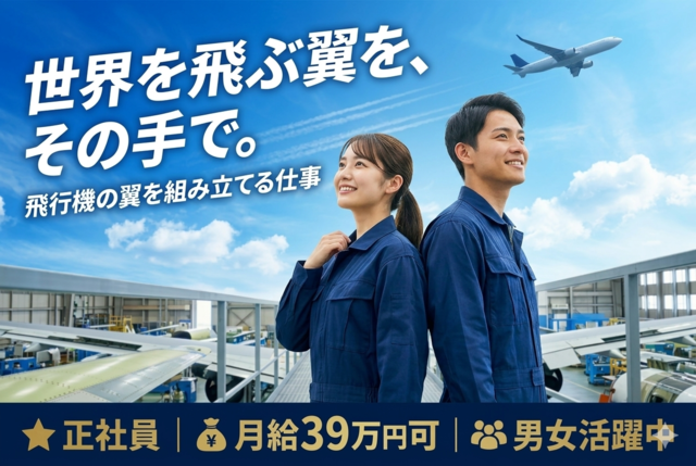 《4/1・4/15入社OK》【正社員(男女10名)】東証プライム◆飛行機の翼の組立て/未経験OK/月収39万円可