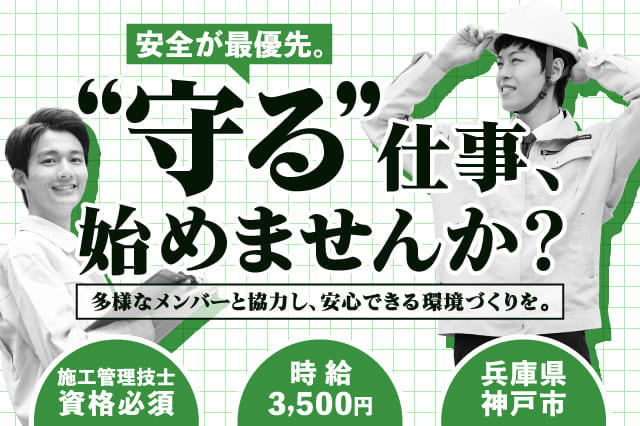【製造現場・社内安全管理スタッフ】施工管理技士や職長安全衛生責任者の資格が活かせる!時給3500円!