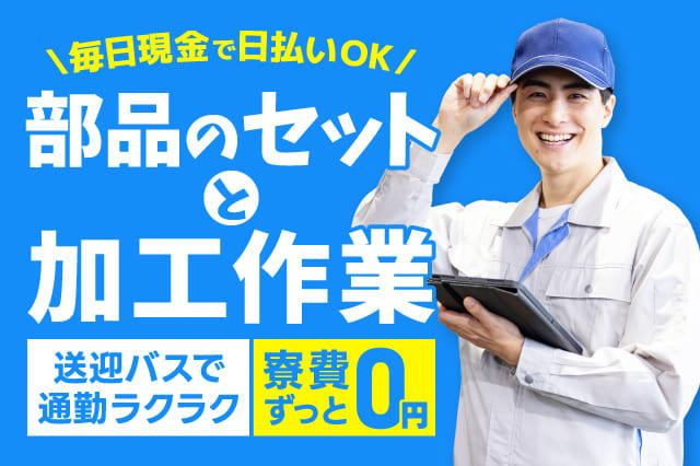 【寮費がずっと0円◎】毎日現金で日払いOK!家族寮・カップル寮完備◎部品をセットして加工する機械オペレーター!