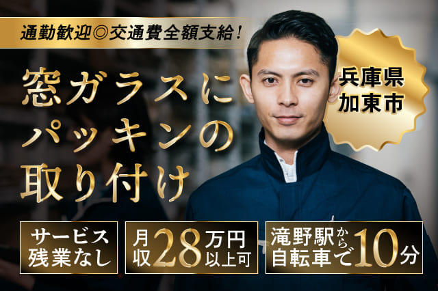 【20名の緊急募集!】20代~40代活躍中★窓ガラスにパッキン取り付け作業★車通勤可能★