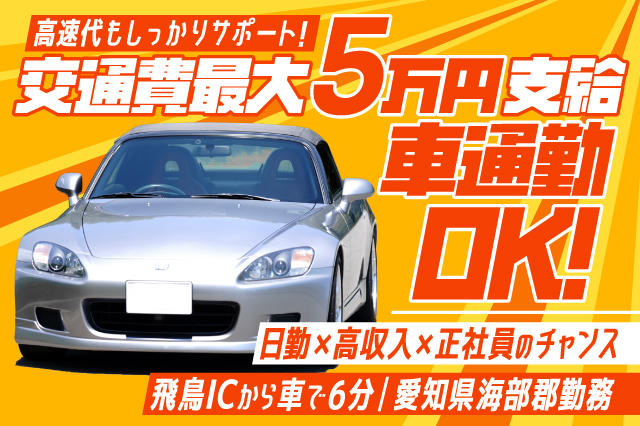 マイカー通勤歓迎★日勤のみ×月収30万円可能◎|交通費最大5万円支給あり♪高速代もしっかりサポート