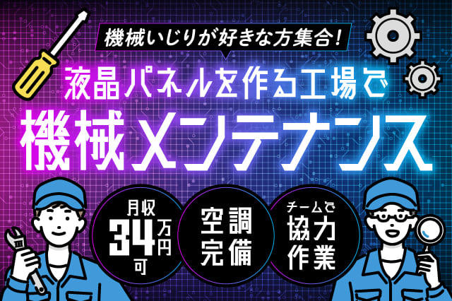 【機械いじりが好きな方集合!】液晶パネルを作る工場で機械メンテナンスのお仕事◎チーム作業で安心!