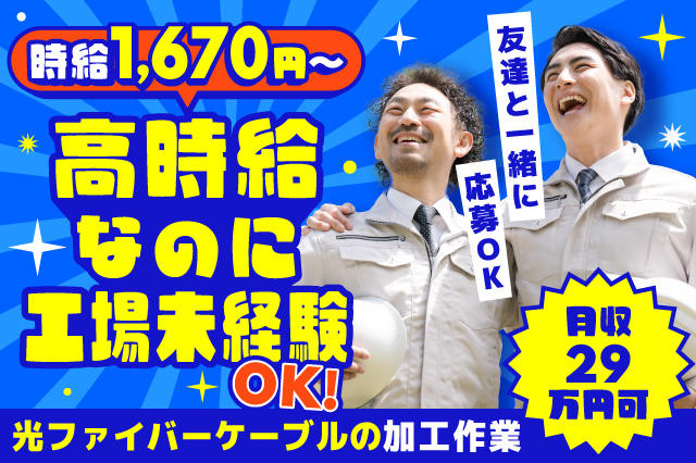 【時給1,670円~の高時給求人!】モクモクできる♪光ファイバーケーブルの加工作業☆月収29万円可☆