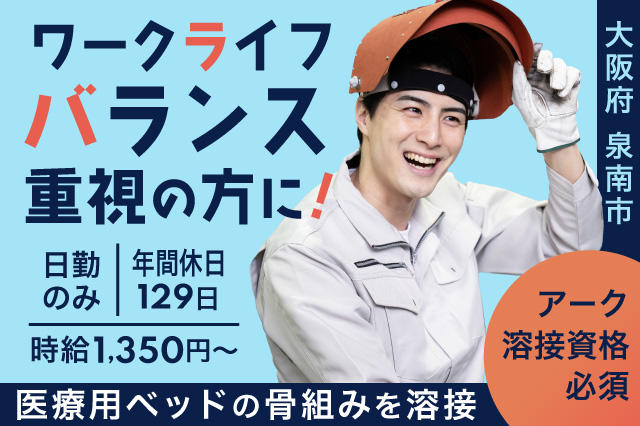 【アーク溶接資格を活かして働こう!】医療用ベッドの骨組みを溶接するお仕事☆樽井駅から徒歩10分の職場◎