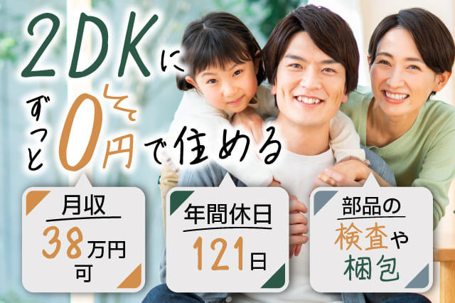 【家族寮にずっと0円で住める】子どもと一緒に入寮OK◎間取りは2DK!月収38万円可◎ベアリングの傷や汚れの検査・梱包作業!