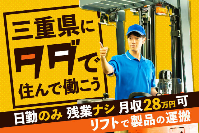 【三重県にタダで住んで働こう!】家具・家電&Wi-FI付きの寮完備★リフトに乗って製品の運搬作業★月収28万円可★