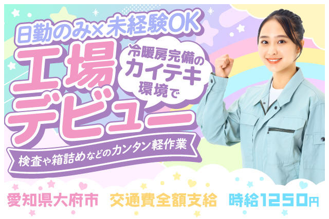 シンプル作業だから工場未経験でも安心◎髪色自由で自分らしく働ける♪好立地でプライベートも充実!