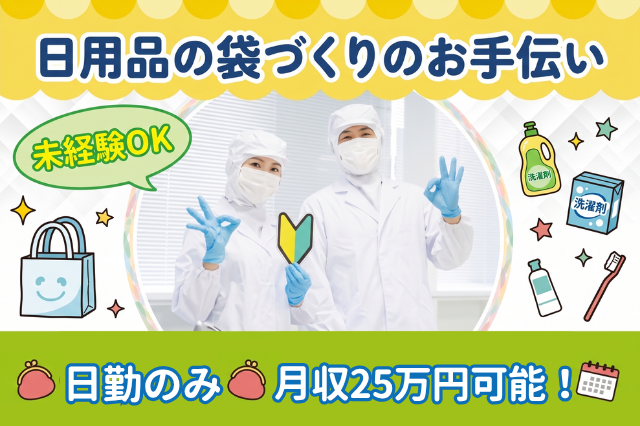 \お菓子や洗剤の袋を作る機械のサポート/未経験OK!冷暖房完備の快適環境◎日勤のみ×土日休み★月収25万円可能★