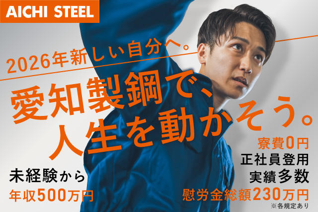 プレビュー用【期間工】愛知製鋼|慰労金総額230万円/TOYOTAグループ◆寮費0円◆完全個室1R◆年休120日以上◆正社員登用実績多数