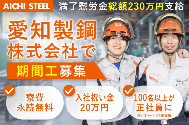 プレビュー用【愛知製鋼株式会社で期間工募集】寮費永続無料◎月給39万円以上可◎勤続1年ごとに日給400円UP!機械オペレーター◎